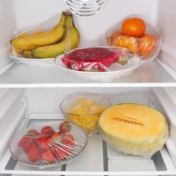 100 PCS Disposable Food Cover Plastic Bags – Transparent Fresh Food Storage & Wrap Bags